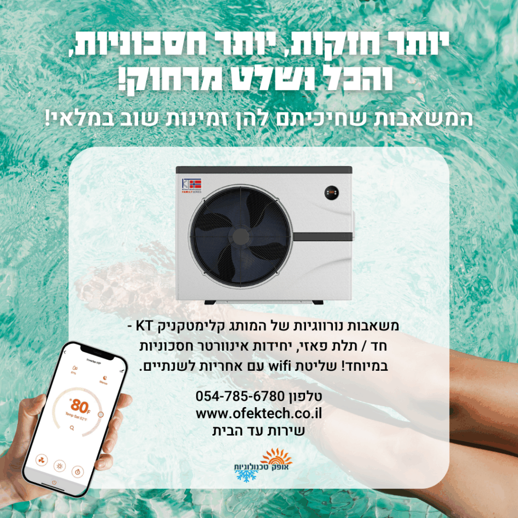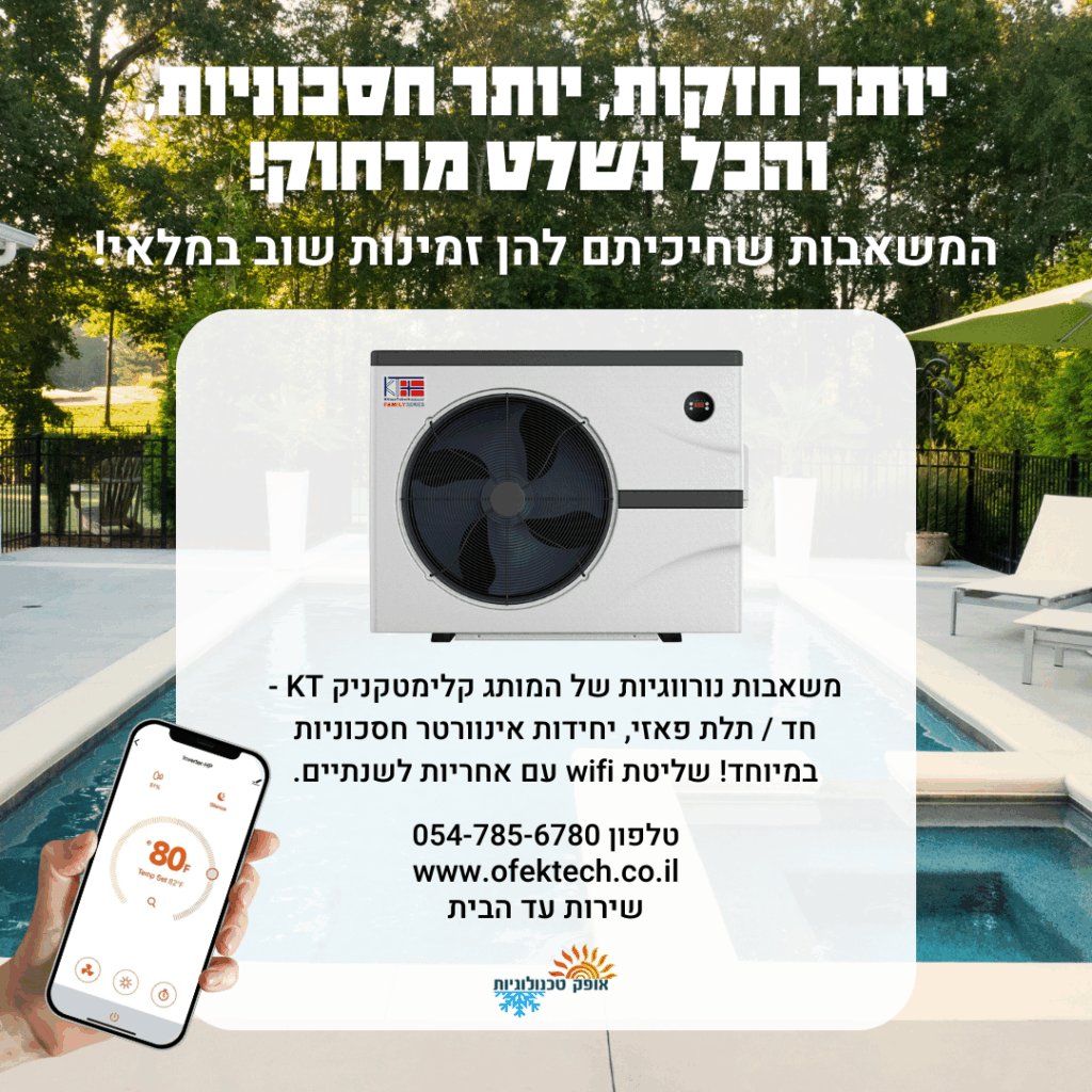 שירות מעולה ומקצועי! רכשנו משאבת חום לבריכה שלנו מאופק טכנולוגיות,