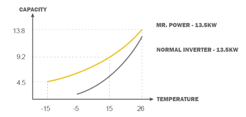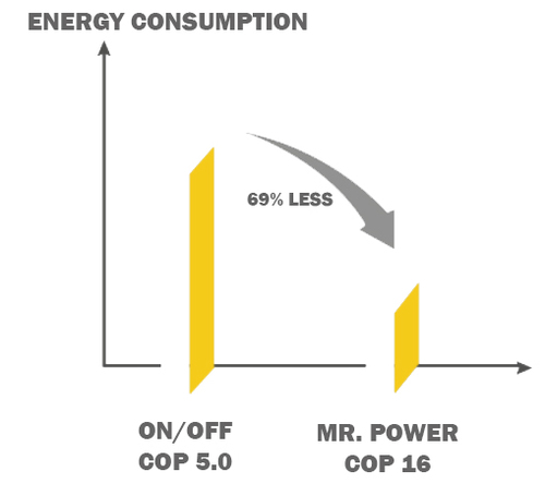 מדד יעילות COP של עד 16.369% פחות צריכת אנרגיה מאשרמשאבת חום ON/OFFיותר מכפול בחיסכון באנרגיה!